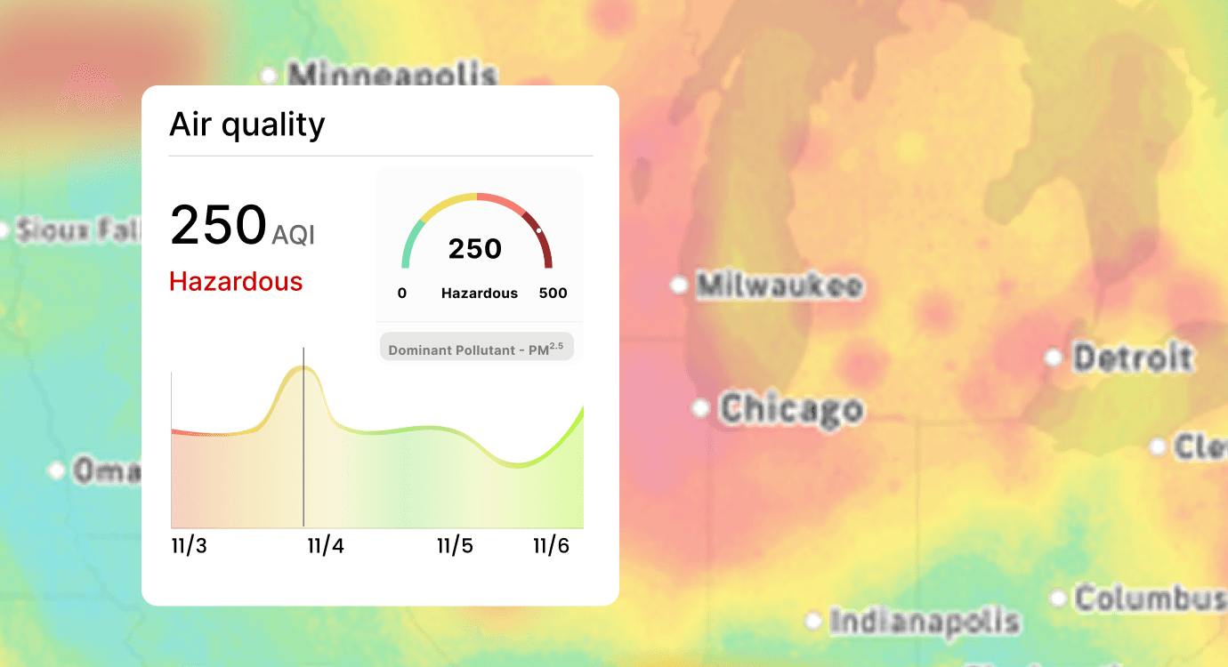 Get notifications when air quality forecasts or real-time values are degraded . Whether it’s wildfire smoke, dust, or pollution, you get instant updates so you can take action before it affects your health.